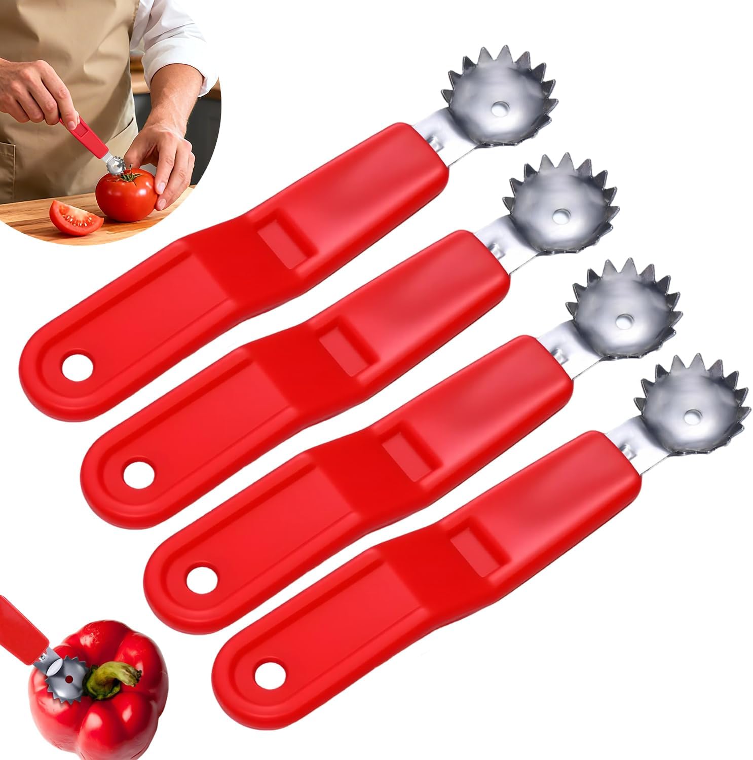 Be the first to review “4 Pieces Tomato Corer Remover Tool Strawberry Huller Stem Remover Kitchen Corer Tool Fruit and Vegetable Baller Dessert Preparation” Cancel reply