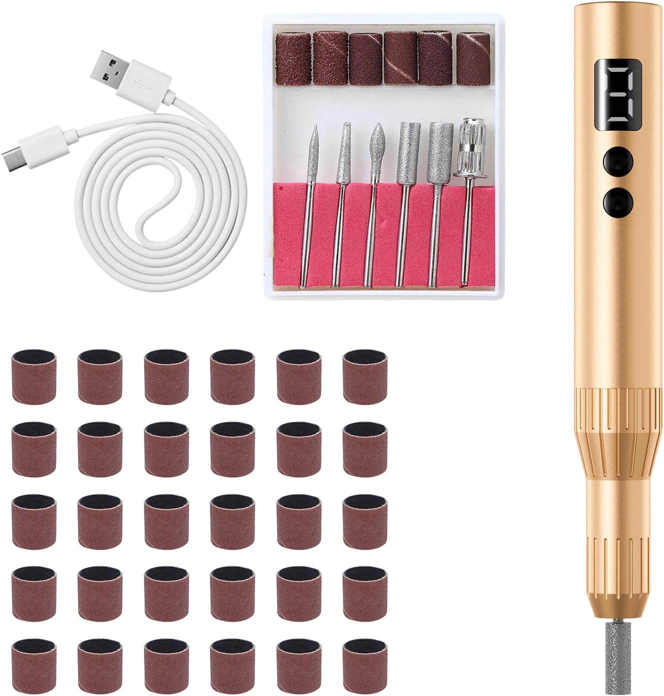 Electric Nail Drill Professional Machine Efile Manicure Pedicure Tools Portable File for Acrylic Gel Dip Powder Nails Salon Use Manicure Pedicure Nail Supplies (Gold)