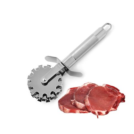 ## The Problem Feeding your dog raw meat but it’s too tough? They struggle to chew, risk tooth damage, and leave half uneaten. Prep time drags on with knives or mallets. ## The Solution Roll this five-wheel tenderizer over raw meat. Piercing blades break down fibers fast, making it soft and easy for pets to chew—no more wasted food or dental trips. ## Why It Works Five stainless steel wheels with 48 blades each penetrate up to 1 inch deep per pass. Non-slip handle grips wet meat. Blades stay sharp after 500+ uses. ## What’s Included – Five-Wheel Meat Tenderizer (12 oz / 340g) – Dimensions: 10″ x 4″ x 3″ – Colors: Black handle, silver wheels – Package contents: Tenderizer tool, storage sheath – Accessories: Cleaning brush ## Specifications – Weight: 12 oz / 340g (product), 16 oz / 454g (shipping) – Dimensions: 10″ L x 4″ W x 3″ H – Material: Stainless steel blades, ABS plastic handle – Blades: 48 per wheel x 5 wheels = 240 total – Penetration depth: 1 inch – Model number: MT–5W – Country of origin: China – Certifications: FDA food-safe – Care instructions: Dishwasher safe, hand wash recommended – Warranty: 1-year manufacturer
