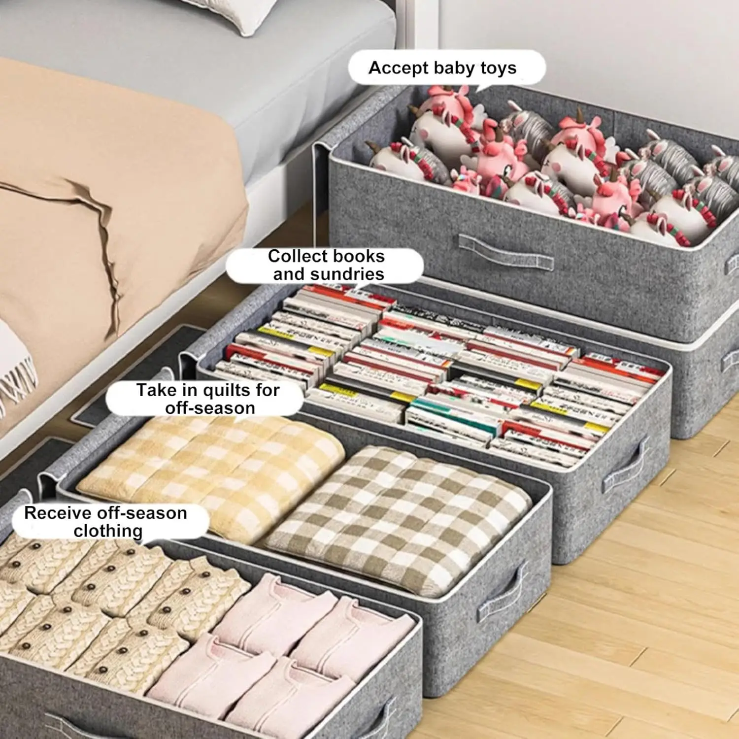 This foldable bin slides right under your bed, zipping up clothes, comforters, and blankets tight. Pull it out when you need something, push it back when done—no more floor chaos.