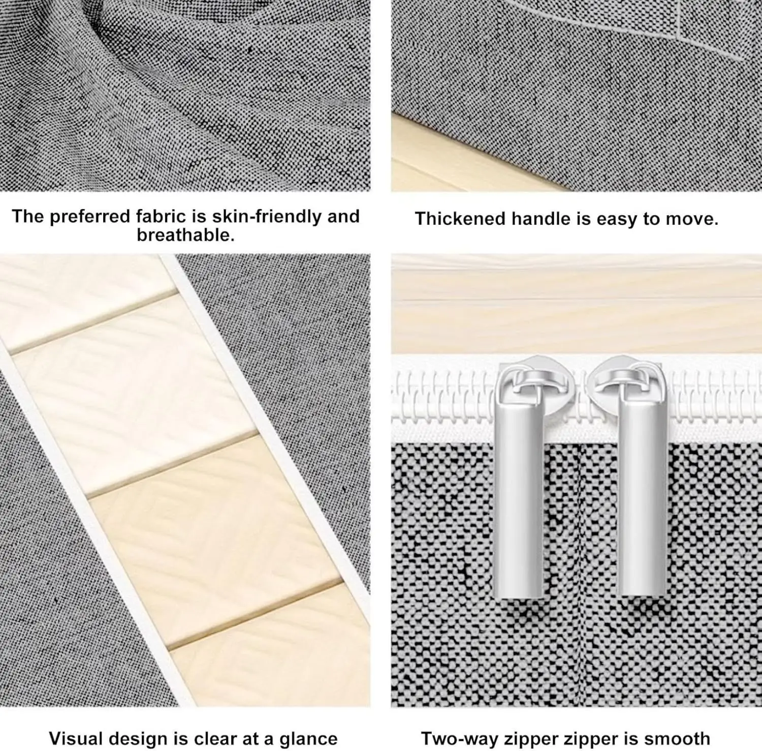 Durable 600D Oxford cloth stands up to heavy loads without ripping. Sturdy double zippers glide smooth even with bulky quilts inside. Reinforced handles let you drag it effortlessly, and the low 6-inch height sneaks under any bed frame.