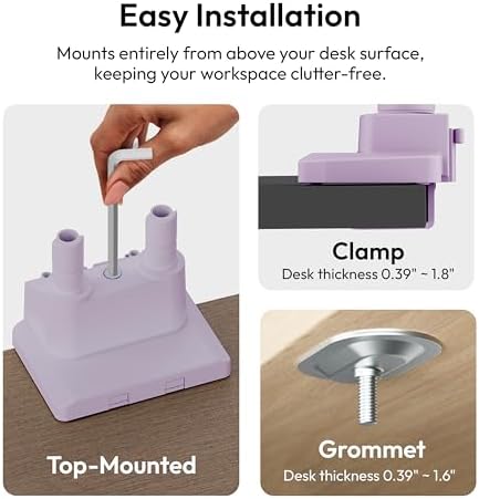 The Pixio PS1D Wave Purple Dual Monitor Arm is your game-changer, letting you adjust screens to eye level for comfier vibes, freeing up desk real estate so you can focus on what matters, and keeping cables hidden for a clean, Instagram-worthy setup that boosts your productivity and energy all day.