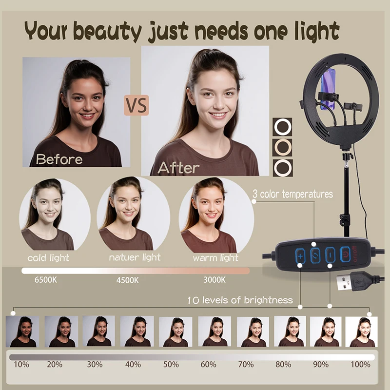 Pop this ring light on its tripod, clamp your phone or iPad, twist to 6-14″, pick a mode, and boom – even, flattering light that keeps eyes glued.