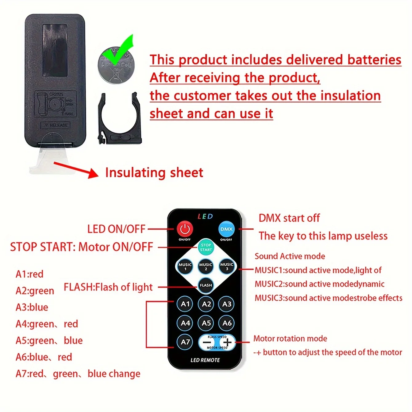 – Features: Remote control, sound activated