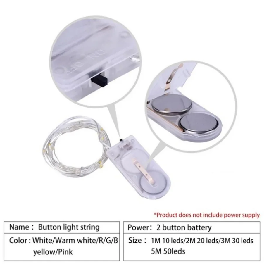– 33 ft (10m) copper wire string with 100 warm white LEDs
